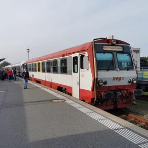 Die NEG mit den IC-Kurswagen zur Fahrt nach Dagebüll Mole steht zur Ausfahrt bereit