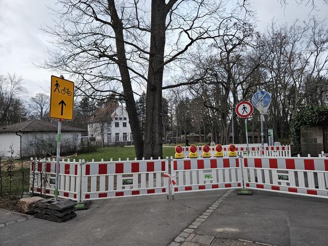 Aus Nürnberg kommend links über den Röllingersteg stand ich dann plötzlich wieder ohne Vorwarnung vor einer Absperrung: