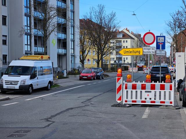 Die Leyher Straße ist zwischen Landmannstraße und Flößaustraße wegen Bauarbeiten gesperrt.