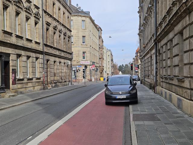 Wie am Vortag: ein PKW steht gegen 14:20 Uhr mit laufenden Motor auf dem Radfahrstreifen und Radfahrer müssen auf die Fahrspur in den Gegenverkehr ausweichen. Der Fahrer kam dann aber aus dem Wettbüro gelaufen bevor ich ein Foto machen konnte.
